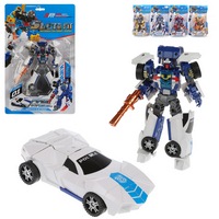 Трансформеры – это современные развивающие игрушки 2 в 1, которые с замиранием сердца собирают мальчишки по всему миру. Только представьте себе, что несколькими движениями рук робота можно превратить в машинку, а потом вернуть ей прежнюю форму. В процессе игры ребёнок будет укреплять мышцы рук, развивать память и логическое мышление. В игрушке предусмотрены светозвуковые эффекты: мигание лампы на корпусе, звук стрельбы и космические звуки. Функции работают от 3-х батареек типа LR41 (входят в комплект). Перед игрой необходимо удалить картонную заглушку, расположенную на крышке отсека для элементов питания.